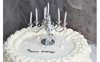 ?蛋糕標(biāo)配:刀、叉、盤+一個生日帽+10支蠟燭;